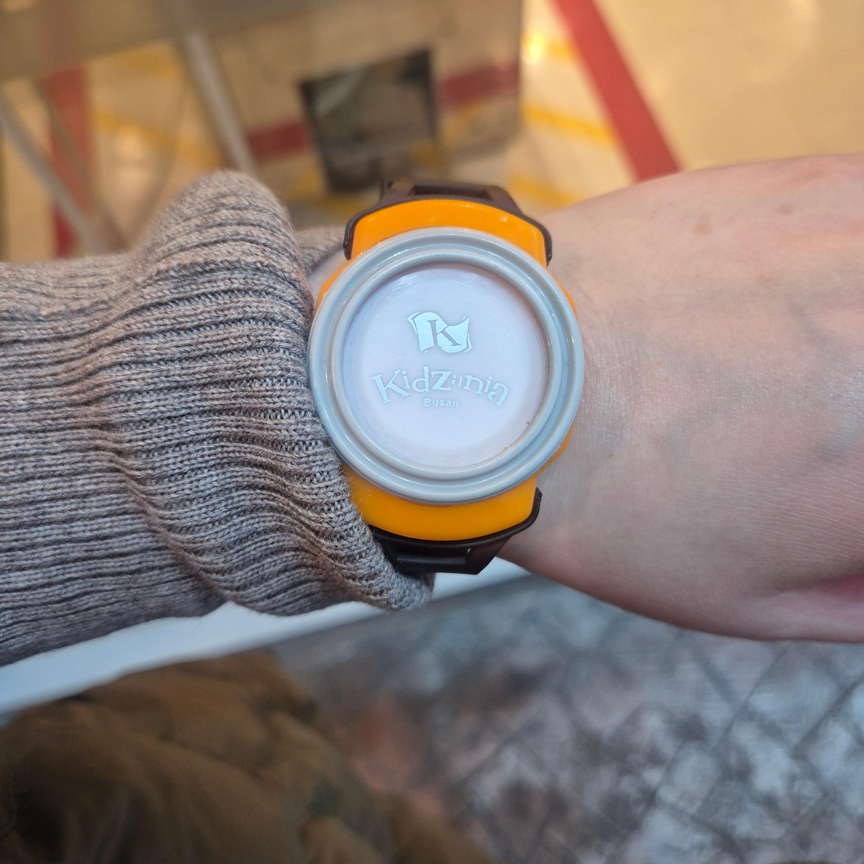 미리 네이버로 예약한 내역을 보여주면 사진처럼 **시계 모양의 입장권(리스트밴드)**을 채워줍니다. 이걸 차고 나니 이제 정말 키자니아 시민이 된 것 같아 마음이 두근두근! 자, 이제 본격적으로 입장해 볼까요?